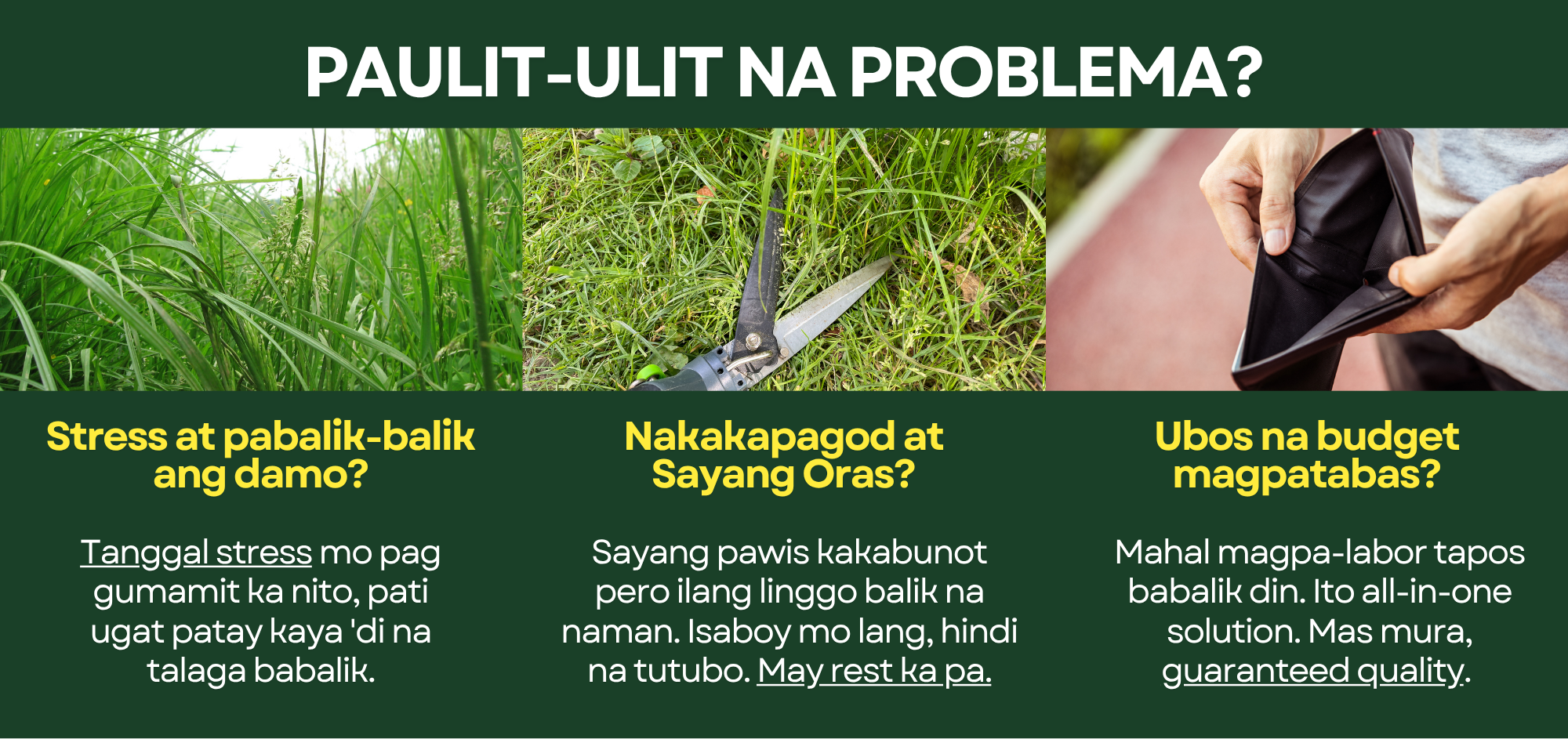 Tapusin na ang walang katapusang bunot at pagtabas. Isaboy mo lang, 'DI NA TUTUBO ULIT!