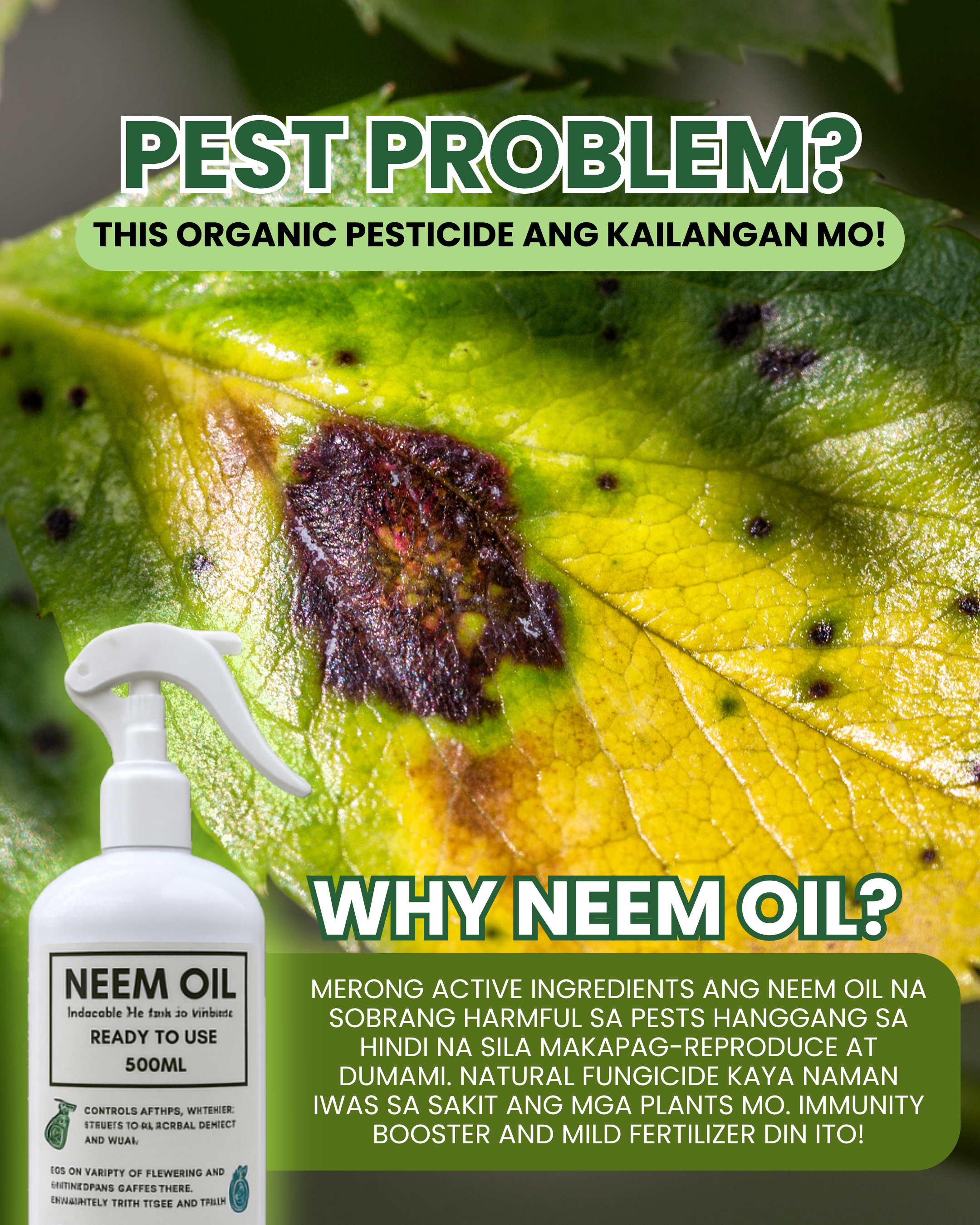 Ang Neem Oil ay organic pest control na kayang pumatay ng peste at protektahan ang halaman at tanim mo. Safe gamitin at eco-friendly. Perfect para sa lahat ng klase ng tanim, mula houseplants hanggang gulay at prutas. Ready-to-use at plant-friendly!