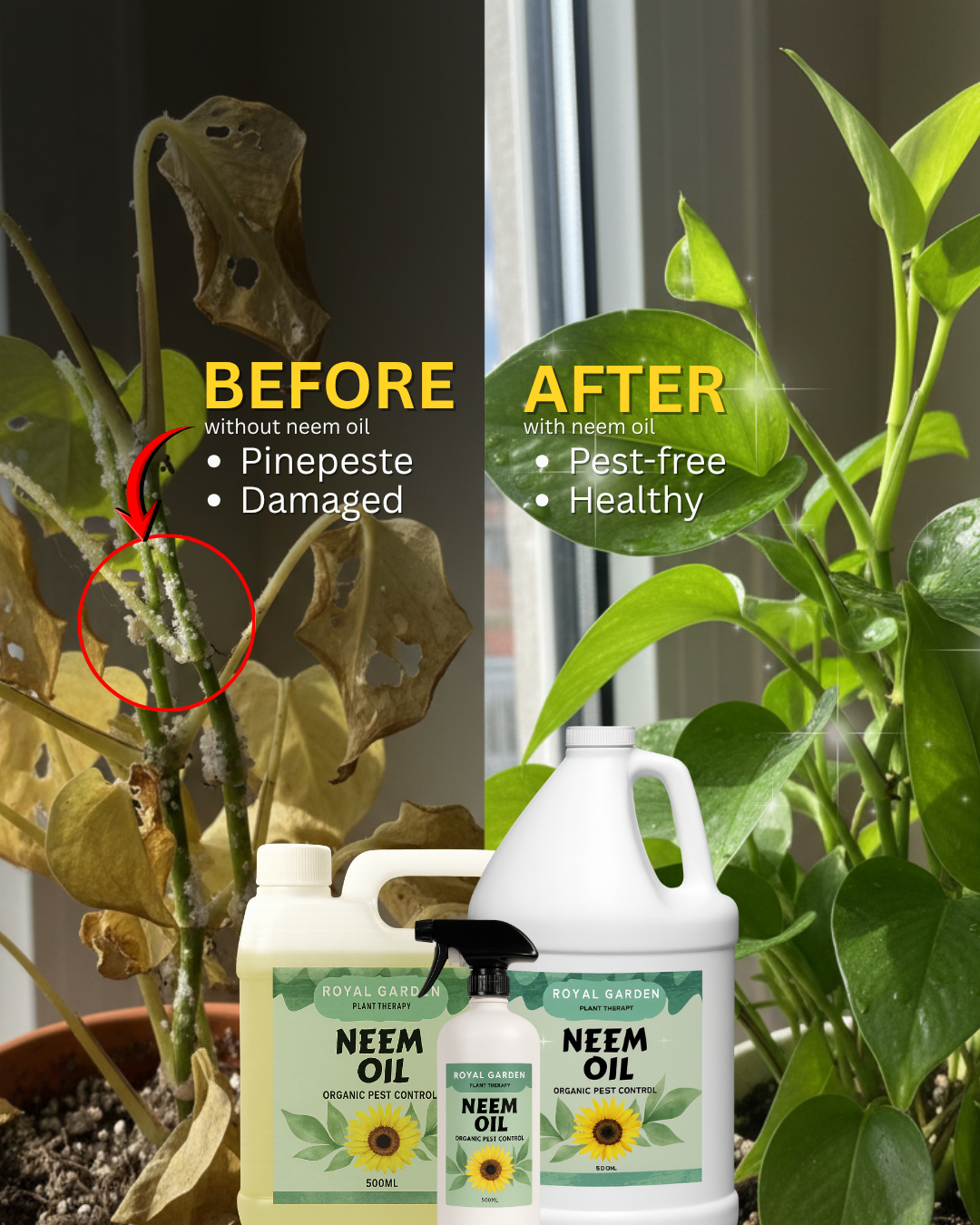 - 100% natural neem extract — safe for plants, gardens, and home use